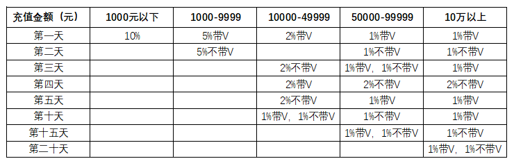 10元充值用戶:需新區再充值10元轉新區20元充值(含新區充值的10)