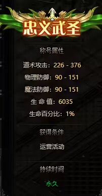 第六名至第十名贈(zèng)送稱號(hào) : 忠義武圣 (生命百分比1%)